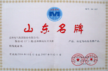 · “益和”牌高壓開關(guān)柜被認(rèn)定為“山東名牌”;