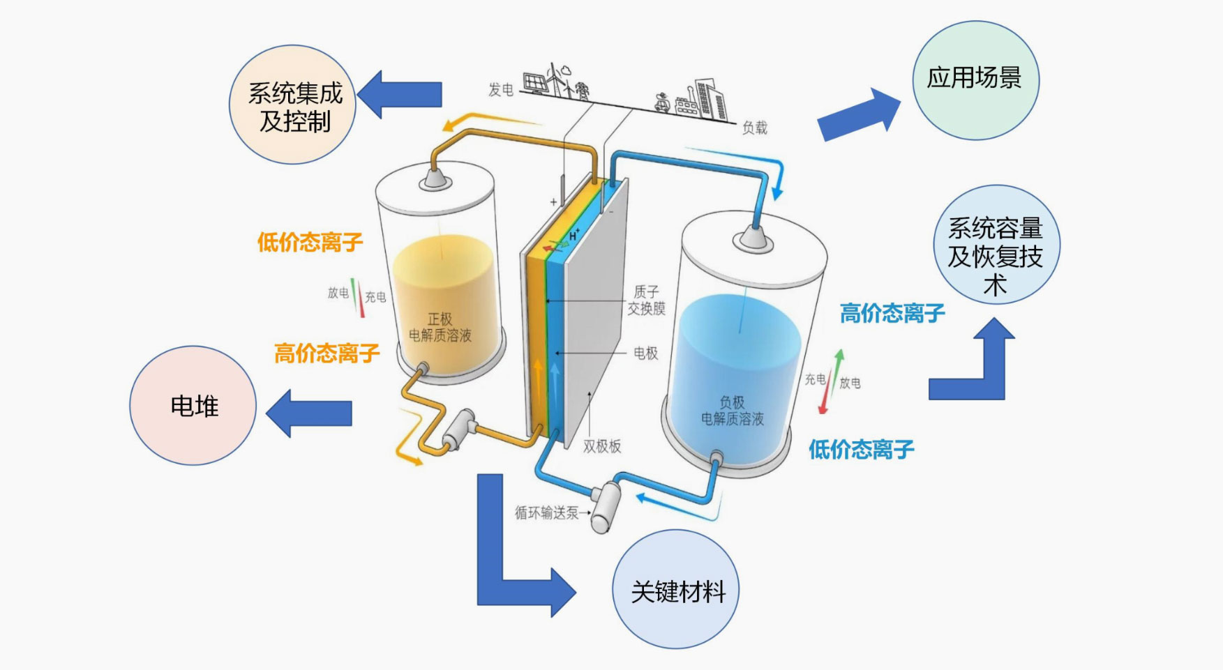 <p>模塊化設(shè)計,各分倉獨立運行,減少事故影響范圍。</p> <p>多重消防策略:極早期預(yù)警、PACK級消防、可燃?xì)獗O(jiān)測+排風(fēng)、七氟丙烷或全氟己酮、多次噴灑、末期水消防等。</p> <p>智能工業(yè)控制器:百兆瓦時電站秒級數(shù)據(jù)監(jiān)控記錄。</p> <p>獨立風(fēng)冷系統(tǒng):冷熱風(fēng)道獨立設(shè)計,精準(zhǔn)熱管理技術(shù)。</p> <p>電氣帶載分?jǐn)啵壕芙^電池簇故障重合閘。</p> <p>20尺液冷方案,容量3.727MWh,能量密度較常規(guī)方案提高8.3%。</p>液流電池儲能系統(tǒng)